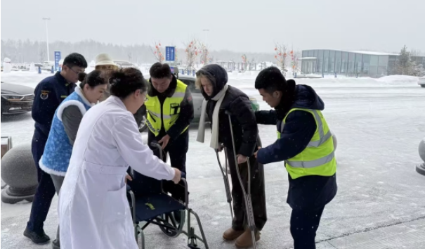 同心联动应急 暖心护航出行 长白山机场温情护送伤员