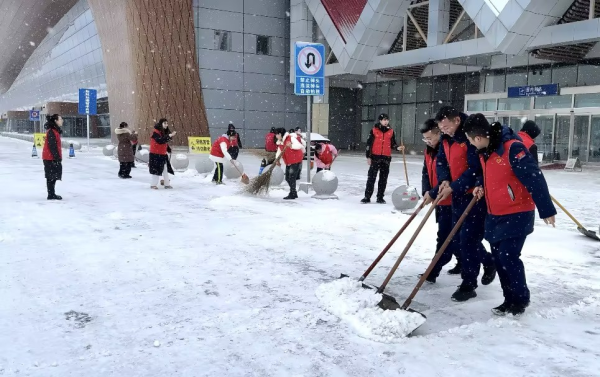 随后,长白山机场分公司的团员们与池西区第一初级中学的老师和学生们组成了一支干练有序的清扫队伍,对长白山机场候机门前积雪进行了清理,为过往旅客提供了安全、便捷的出行环境,同时赢得了旅客们的纷纷点赞。