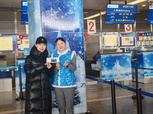身穿冰雪主题服饰的“冰凌花”班组成员,成为候机楼内一道亮丽的风景线,“冰凌花”班组成员在候机楼内为旅客提供咨询、引导、帮扶等贴心服务,并设立“全域旅游服务专岗”,做到疑惑有人答、流程有人引、困难有人帮的一站式无忧服务。这不仅为候机楼增添了浓郁的冰雪氛围,更使广大旅客在候机片刻便能深切体会冰雪旅游的独特魅力。