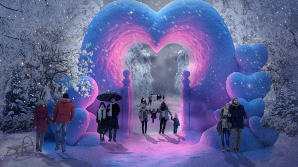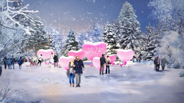 在这片爱情森林中,以独特的爱心门造型引人注目。