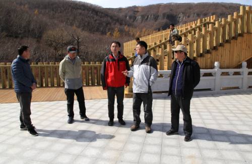 黄金周期间,长白山管委会副主任霍建军(上图右二)会同旅游、公安、安监、交通、运管等多部门,深入景区和辖区,对旅行社、旅游运输车辆、星级饭店、旅游餐馆开展旅游市场秩序和旅游安全检查。景区公司、森警、边防部队等单位也在假日期间深入各大景点,全力维护景区秩序。