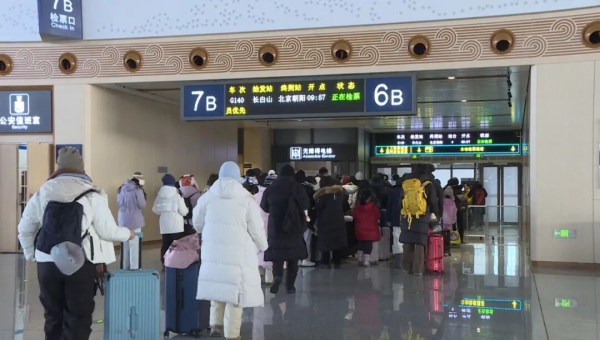 据统计,2026年春运期间,长白山站累计到达旅客25.6万人次,累计发送旅客27万人次,同比增长13.68%。作为沈白高铁的重要交通枢纽,高铁客流成为拉动增长的核心动力。其中,发往沈阳方向旅客约13.3万人次,发往北京方向约3.9万人次;沈阳至长白山方向发送旅客约3.1万人次,北京至长白山方向约1.6万人次,标志着区域快速立体交通网络已初步成型。春运期间,长白山站运力保障持续加码。全站累计开行列车1257趟,与去年同期相比增长120%。针对客流特点,精准加开去往沈阳方向列车18列次、北京方向6列次,高效匹配了返乡、旅游及务工出行需求。此外,站内还特设免费电话亭,为有需要的旅客提供即时通讯服务,切实解决了旅途联络难题。