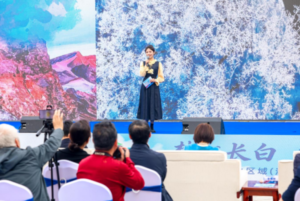 在推介环节,一场全景式长白山文旅盛宴正式展开。首先播放的《22°C的夏天 清爽长白山》宣传片瞬间让与会嘉宾沉浸在长白山夏季的清凉惬意中。随后,长白山保护开发区、白山市、延边朝鲜族自治州的文旅代表依次登台,分别围绕各自区域的核心文旅资源、特色产品线路、新业态新玩法等进行详细推介,从长白山的地质奇观、白山的生态秘境到延边的朝鲜族风情,各具特色、重点突出,全面呈现了大长白山区域生态、民俗、康养、自驾等多元的文旅资源,展现出全域联动的文旅发展格局,共同勾勒出“四时俱好”的文旅画卷。